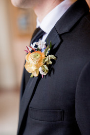 The flowers for this wedding were inspired by Mary Mercer's animated personality and the spring season. Bright colors paired with a variety of textures enhanced the home garden atmosphere. Garden roses in various pinks, soft yellows and oranges as well as the majestic coral charm peony were definitely the showstoppers. We love the look of the chartreuse green viburnum blooms, adding vibrancy and texture to the centerpieces and installations. We were blown away at how every piece of this party's puzzle came together to create such a fun and absorbing celebration.
