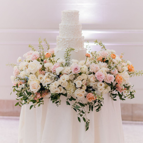 Our favorite moment from this wedding was definitely the cake table display. We added a full 360 degree meadow celebrating the already stunning cake design.